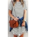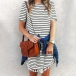 Fashion Short Sleeve Round Neck Irregular Tassel Hem Stripe Dress