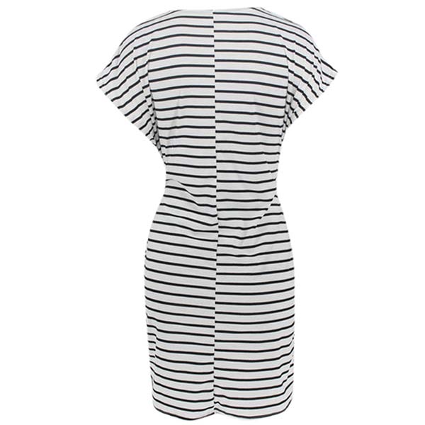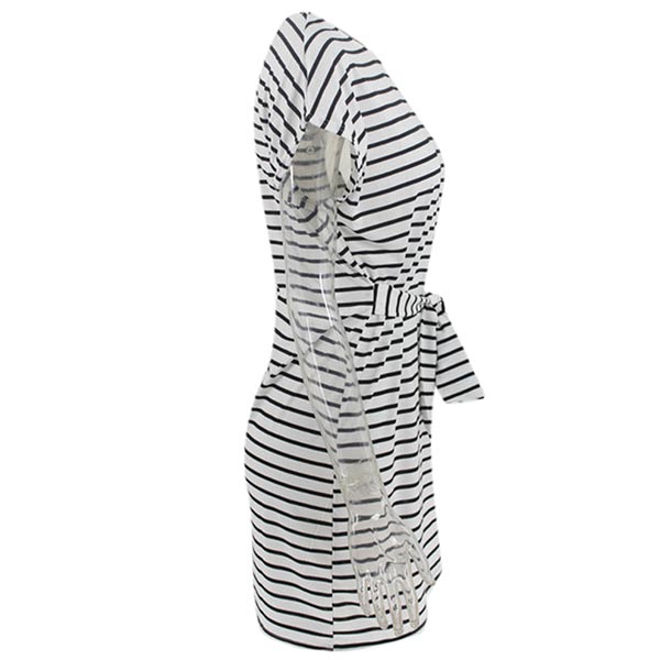 Fashion Short Sleeve Round Neck Lace-up Striped Dress