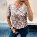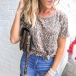 Fashion Short Sleeve Round Neck Leopard Printed T-shirt