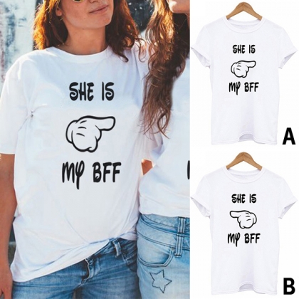 Fashion Short Sleeve Round Neck Letters Printed Besties T-shirt