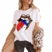 Fashion Short Sleeve Round Neck Lip Printed T-shirt