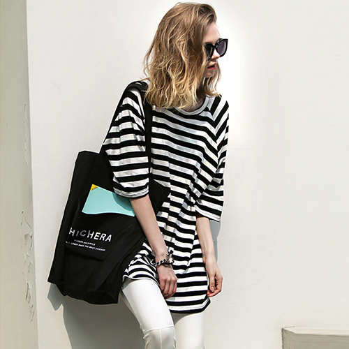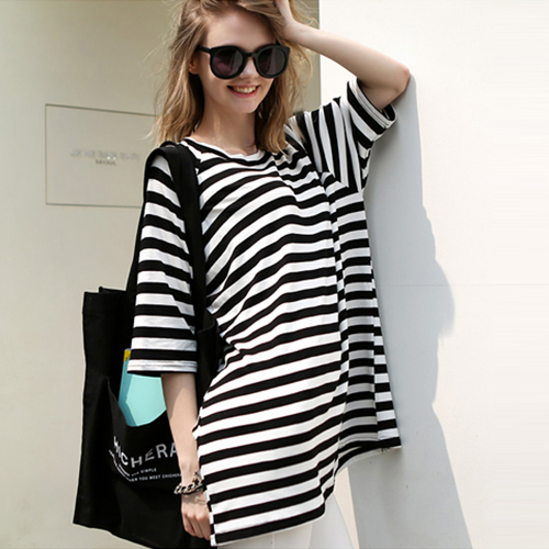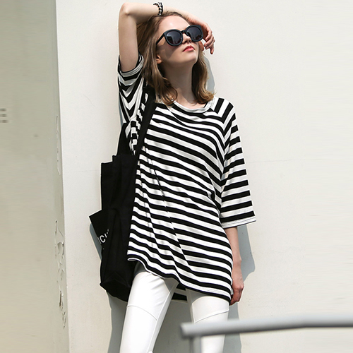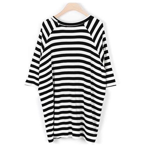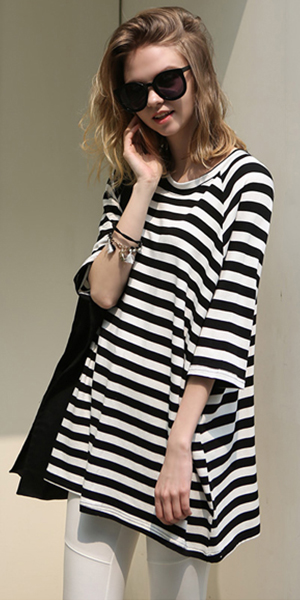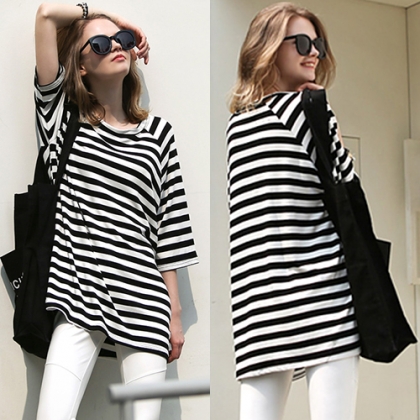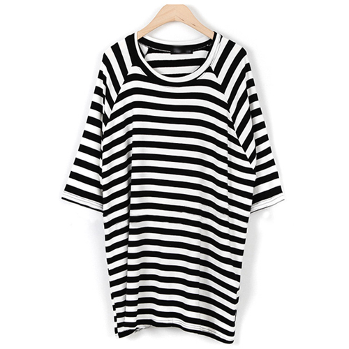 Start your casual and stylish style from this t-shirt. Black and white striped style,with a round neck