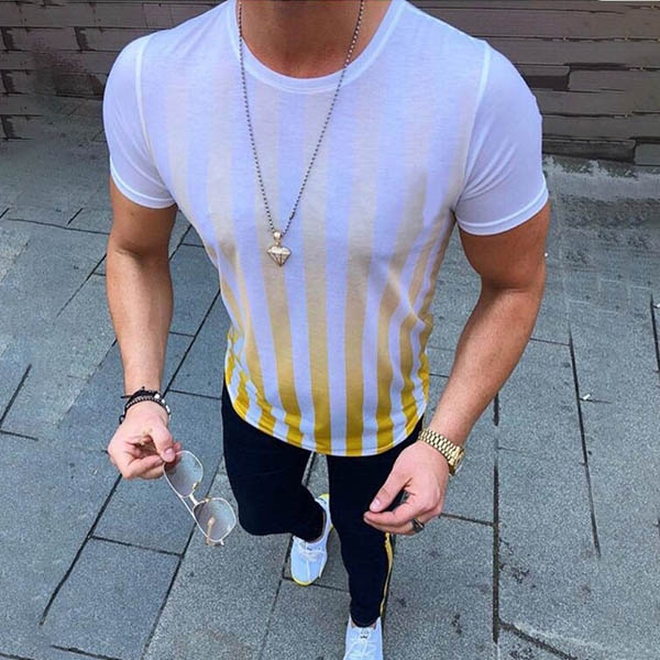 This t-shirt is designed with striped element,stylish and popular. Finished with short sleeve,