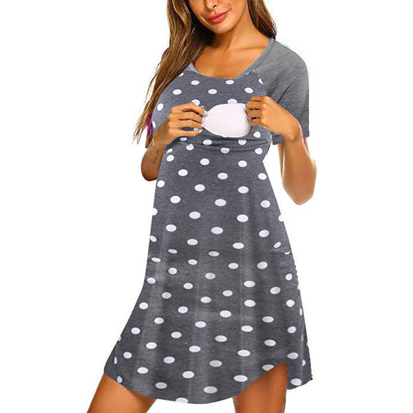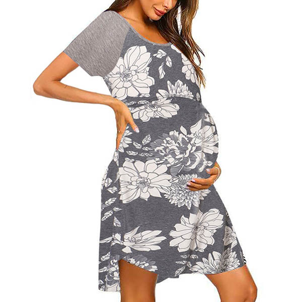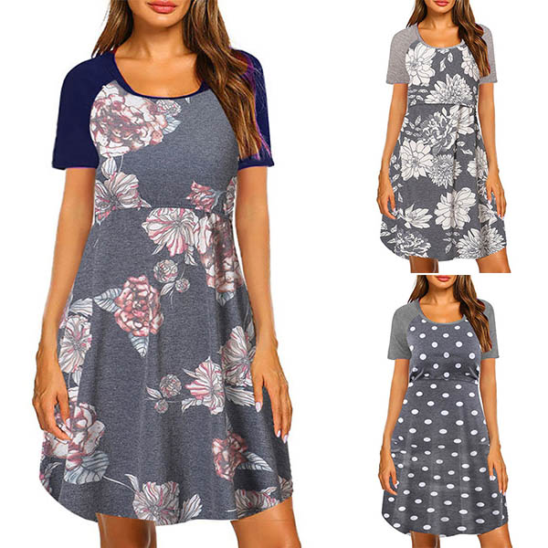 Fashion Short Sleeve Round Neck Printed Breastfeeding Dress