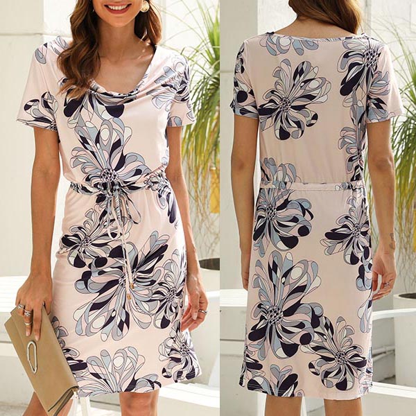 Your summer wardrobe is not complete if without a beautiful printed dress. This dress is designed with chic printed details,with short sleeve,round neck and drawstring waist design,this dress can give you an easy transition from daytime out to night dating.