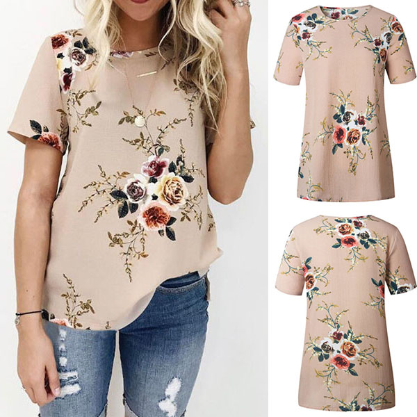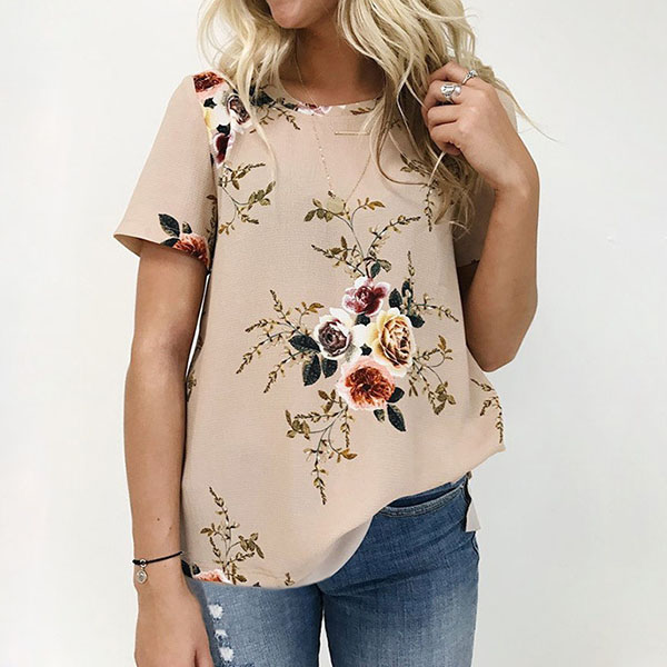 Cozy and style is what this t-shirt can bring for you. Features sweet and vibrant floral print,accompanied with short sleeve,