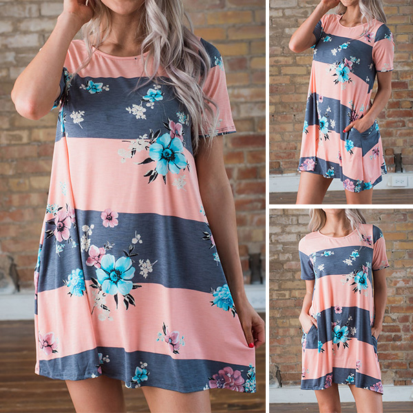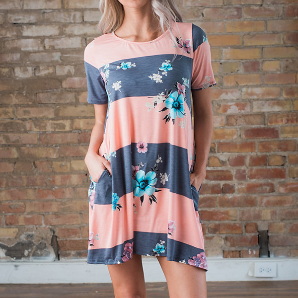 Infuse some different color into your weekend ensemble with this short sleeve t-shirt dress. Its multi-coloured printed patterns