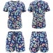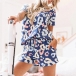 Fashion Short Sleeve Round Neck Printed Top + Shorts Two-piece Set
