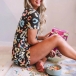 During your home time and sleeping time,you deserve to have an utmost comfort. So we suggest you choosing this two-piece set. Including a short sleeve round neck top and a shorts,its soft and breathable fabric can ensure the comfy,while the chic printed details will make it look more eye-catching.