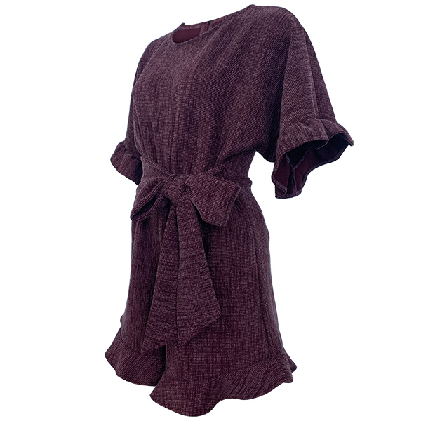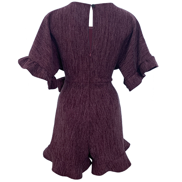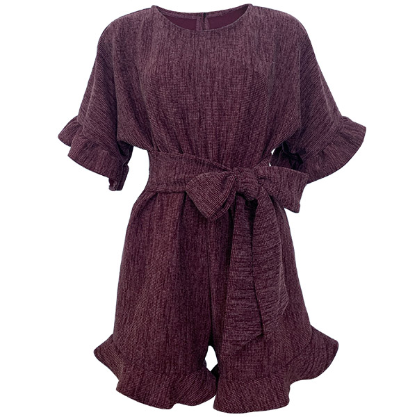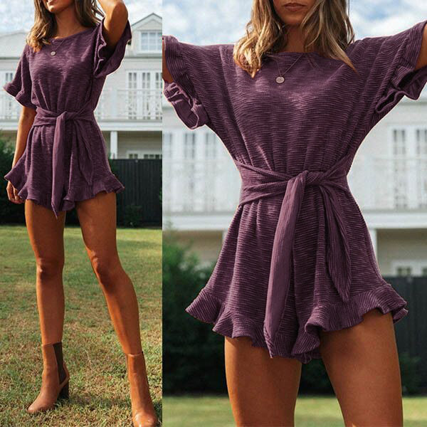 When you wanna try a different style piece,then this romper can be a good choice. It is finished with short sleeve,round neck and ruffle hem design,cozy yet stylish. The lace-up design at the waist part can showcase your slender figure. Just slip into this piece to get prepared to win more eyes.