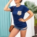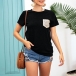 Fashion Short Sleeve Round Neck Sequin Spliced T-shirt