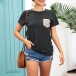 Crafted from soft and breathable fabric,with short sleeve and round neck design,this t-shirt is sure to offer you a comfortable day. In addition,the sequin spliced chest pocket design will make this piece look more attractive. Perfect fit for your casual weekends and off-duty days.