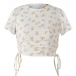 Fashion Short Sleeve Round Neck Side-drawstring Printed Crop Top