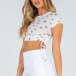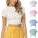 Give your summer wardrobe an update by adding this crop top. The chic printed details will help you catch more eyes. Finished with short sleeve,round neck and soft,breathable fabric,this piece definitely can ensure the comfy. Moreover,the side-drawstring design will add some extra charm. You can just slip into this piece to piece to flaunt off your slender waist and enjoy your summer days.