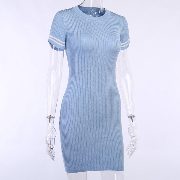 Fashion Short Sleeve Round Neck Slim Fit Knit Dress(It's stretchy)