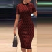 Fashion Short Sleeve Round Neck Slim Fit Printed Dress