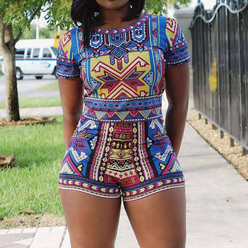 This romper features chic and abstract printed style,with short sleeve,round neck