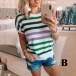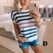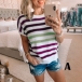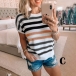 Fashion Short Sleeve Round Neck Striped Knit T-shirt