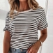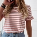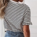 A stylish and all-match stripe t-shirt is everyone's wardrobe essential. So what are you waiting for if you still not have one? Crafted from soft and breathable fabric,with short sleeve and round neck design,this t-shirt can ensure you a comfortable day. Moreover,the ruffle cuff design boosts its entire charm. Like it? Then invite it to your wardrobe!