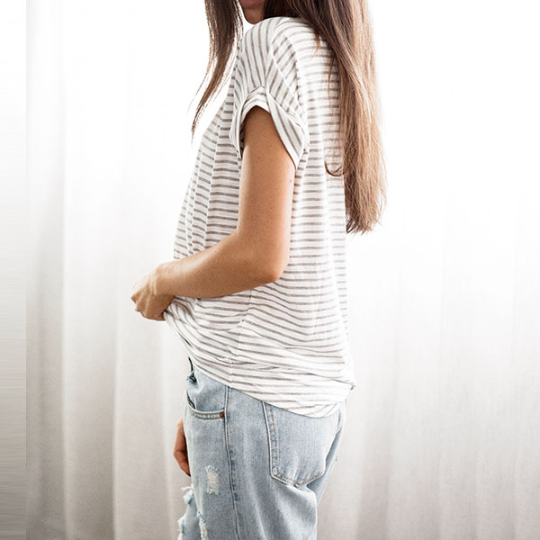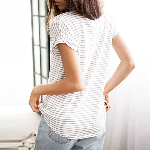Add this striped t-shirt to your wardrobe ensemble and you won't be disappointed. Striped style,crafted from soft