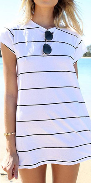Striped style,with short sleeve,round neck and cozy fabric,this t-shirt dress can keep you