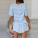Fashion Short Sleeve Round Neck Striped T-shirt + Shorts two-piece Set