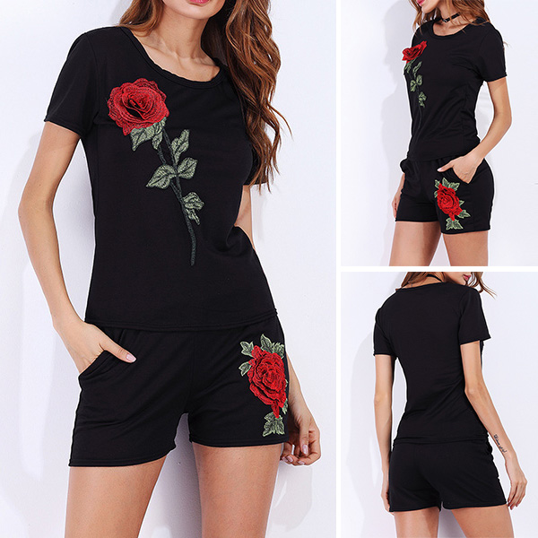 waist shorts,crafted from soft and breathable fabric,this two-piece set can ensure you a comfortable day. Plus,its embroidered