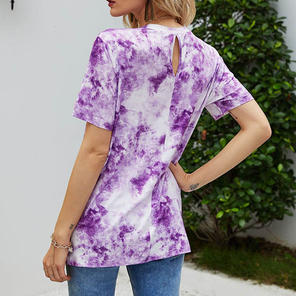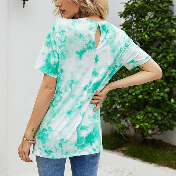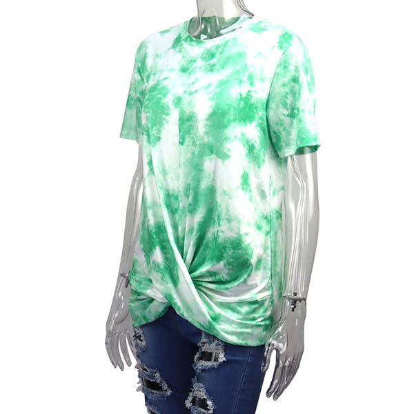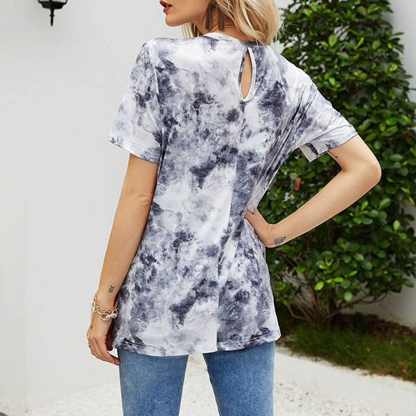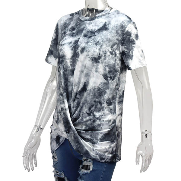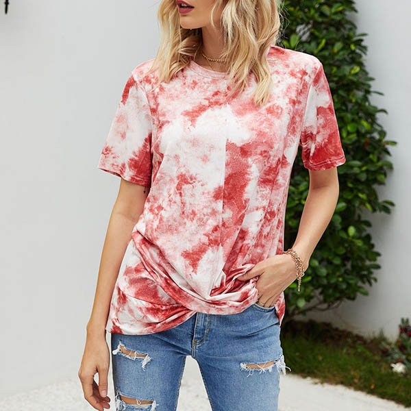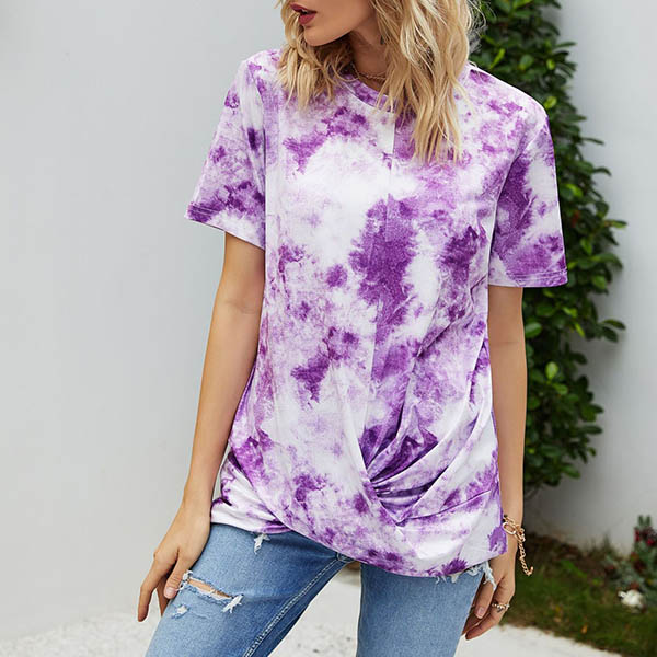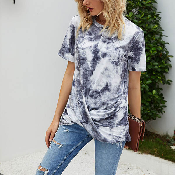 Fashion Short Sleeve Round Neck Twisted Hem Tie-dye Printed T-shirt