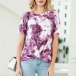 Fashion Short Sleeve Round Neck Twisted Hem Tie-dye Printed T-shirt