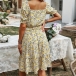 Fashion Short Sleeve Square Collar Printed Crop Top + Skirt Two-piece Set