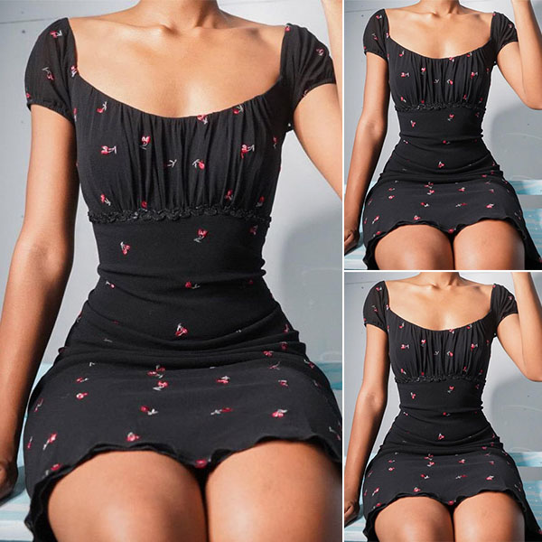 Your wardrobe will feel new and refreshing with this printed dress! It is finished with short sleeve,square collar and a fit silhouette,this dress not only can enhance your feminine appeal,but also can portray your slender figure. For your daytime out and dinner dates,this dress can give you a perfect transition.