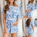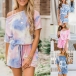 Fashion Short Sleeve Tie-dye Printed T-shirt + Shorts Two-piece Set