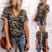 Fashion Short Sleeve V-neck Camouflage Printed T-shirt