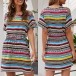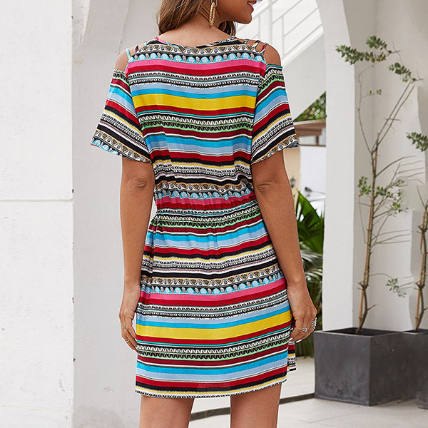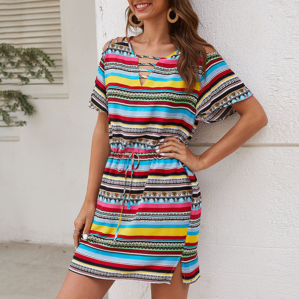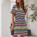 Fashion Short Sleeve V-neck Colorful Striped Dress