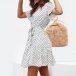Looking for a proper dress for your night dating and weekend out? Then make your eyes focused on this dress! It is designed with dots printed details,which make it look so playful and eye-catching. Finished with short sleeve,v-neck and front-button details,this dress can make you look effortlessly charming and beautiful.