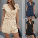 Fashion Short Sleeve V-neck Elastic Waist Lace Romper