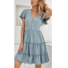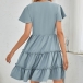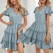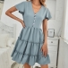 Fashion Short Sleeve V-neck Front-button Solid Color Dress