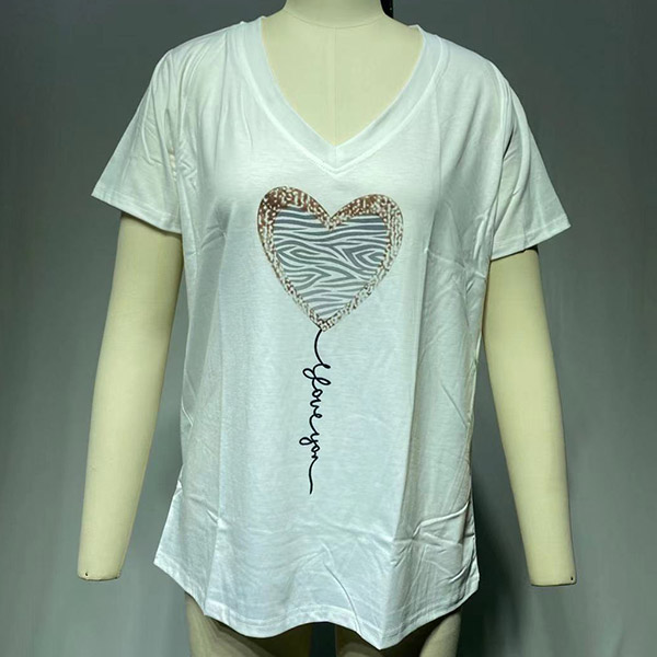 Fashion Short Sleeve V-neck Heart Pattern T-shirt