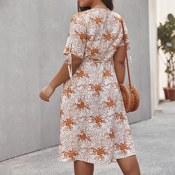 For these summer days,a cozy yet stylish printed dress is an essential. So how about this piece? It features chic printed details,with short sleeve,v-neck and an irregular hem design,this dress definitely can make you look effortlessly charming and beautiful.
