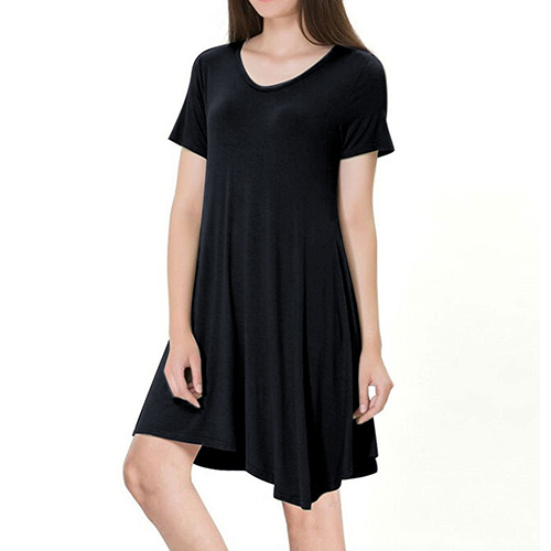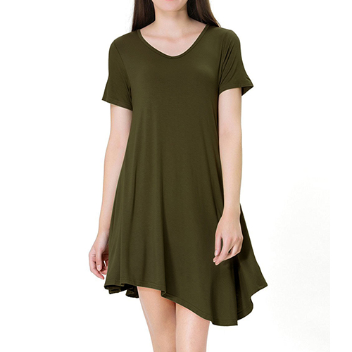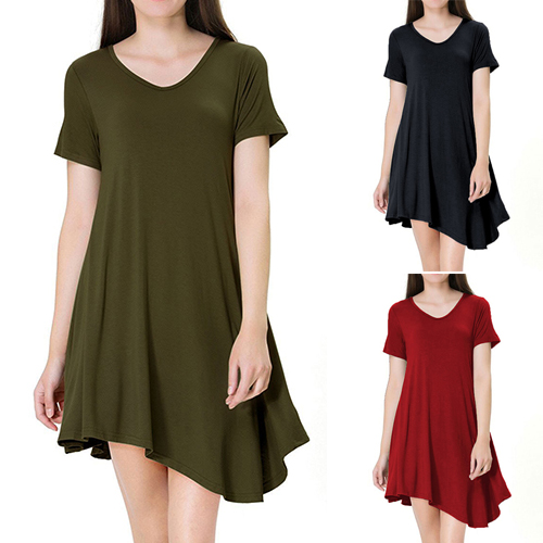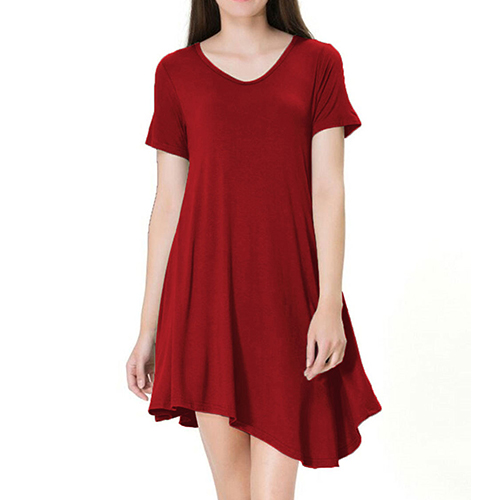 style,with short sleeve,v-neck and an irregular hem,simple yet stylish. Just need to slip into this dress and paired with your favourite shoes,then you can ready to go out!