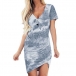 Fashion Short Sleeve V-neck Irregular Hem Tie-dye Printed Dress