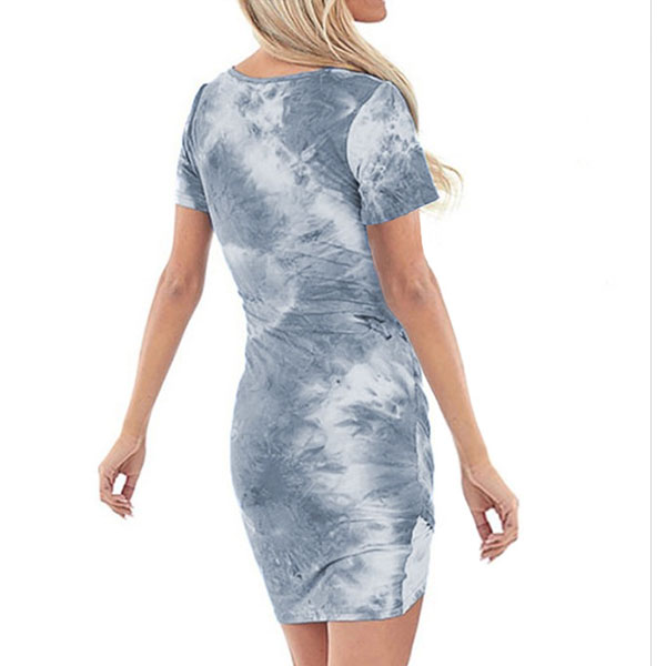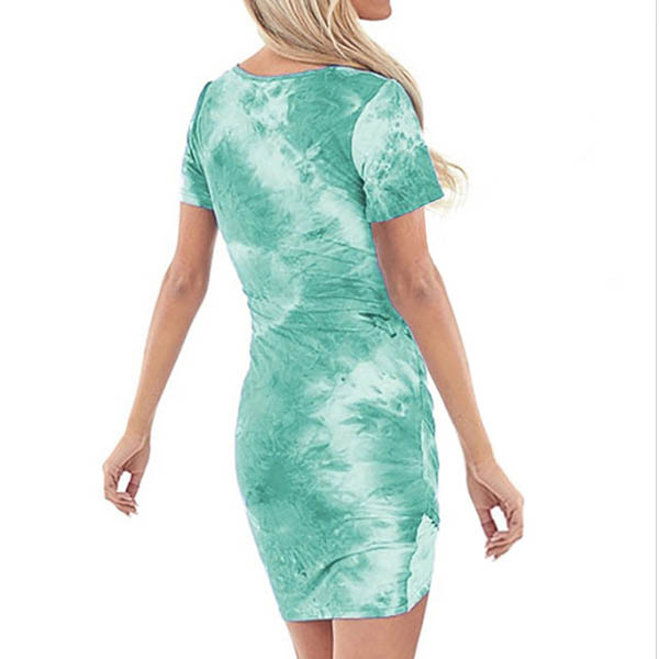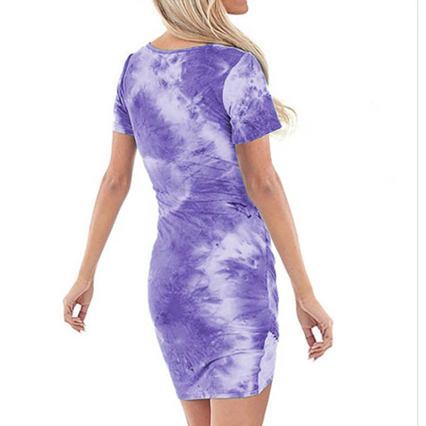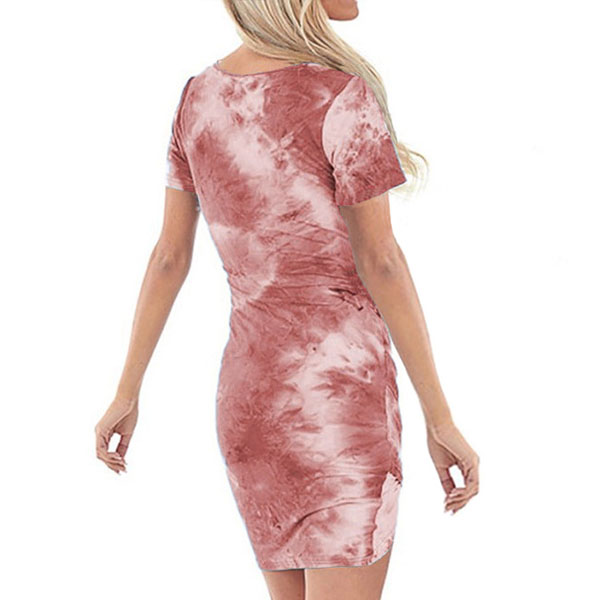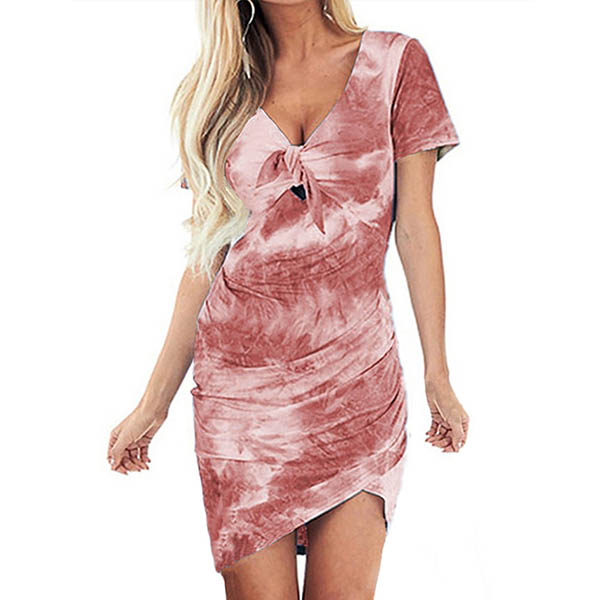 If style and comfort is what you're seeking for,then this dress is sure to strike your fancy.The tie-dye printed details make this piece look so eye-catching and attractive. Finished with short sleeve,v-neck,an irregular hem and a fit silhouette,this dress also can showcase your slender figure. So why not take interest in it?