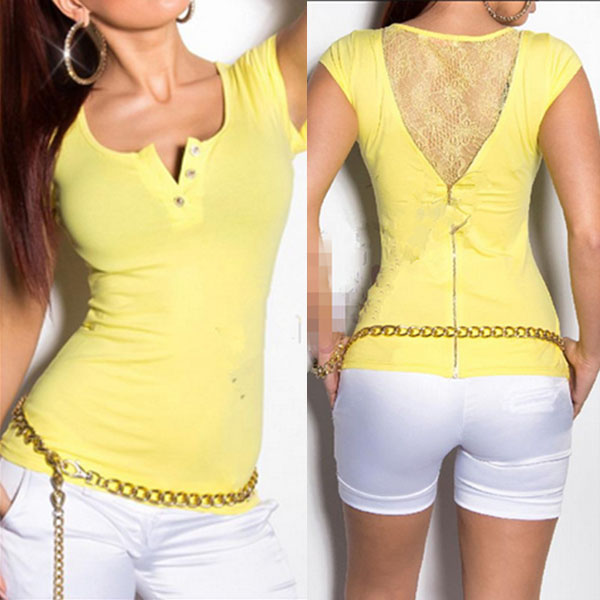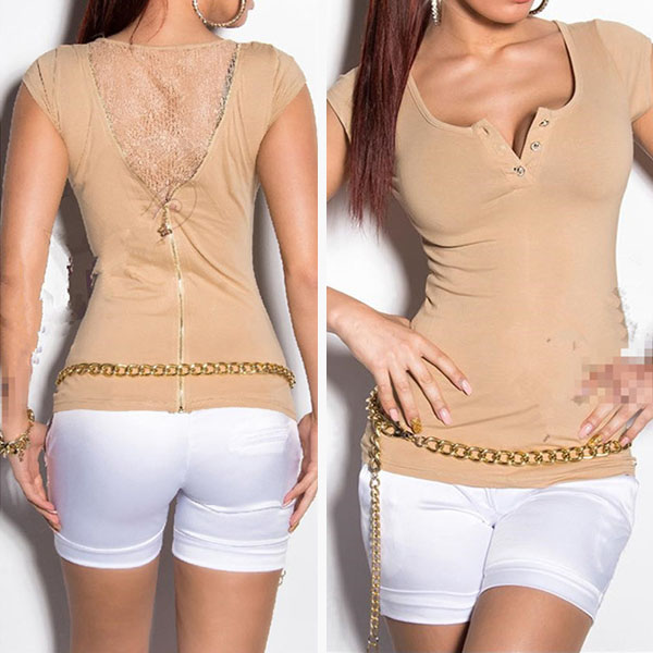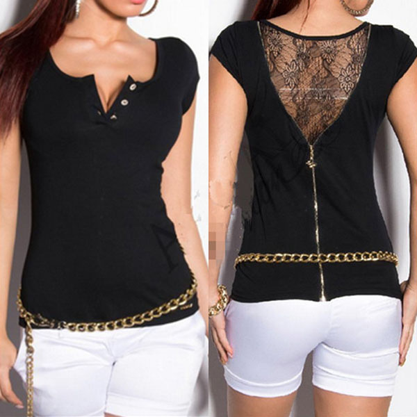 lace spliced and zipper design at back,chic and distinctive. Except for cozy,what's more this t-shirt can bring for