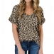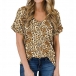 Fashion Short Sleeve V-neck Leopard Printed T-shirt