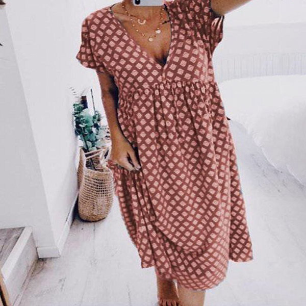 Fashion Short Sleeve V-neck Loose Printed Dress
