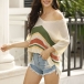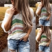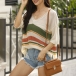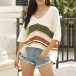 You can have an utmost comfort when you wear this knit top. The colorful stripe design makes it look so stylish and attractive. Finished with short sleeve,v-neck and a loose silhouette,this wonderful top can maintain your style and charm. This is just the thing you need on these casual days.