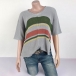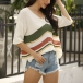 Fashion Short Sleeve V-neck Loose Striped Knit Top