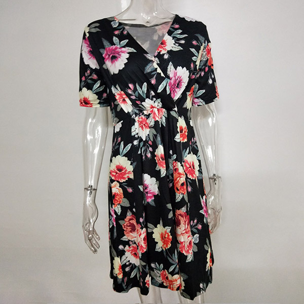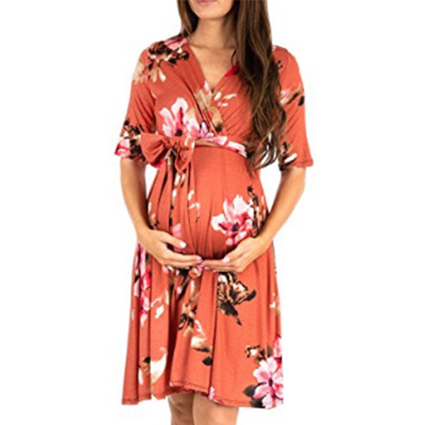 Fashion Short Sleeve V-neck Printed Maternity Dress