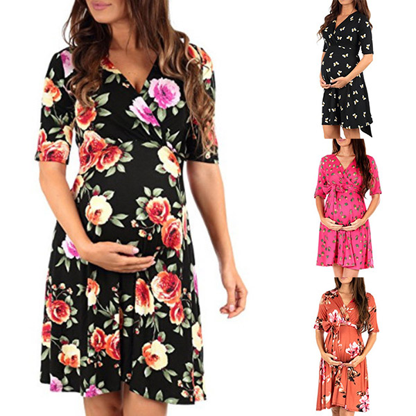 Who says pregnant women have little chance to express their beauty? This beautiful printed dress can help you. Features chic,vibrant and vivid printed details,with short sleeve and v-neck design,this dress not only can give you a comfortable day,but also knows how to express yourself.