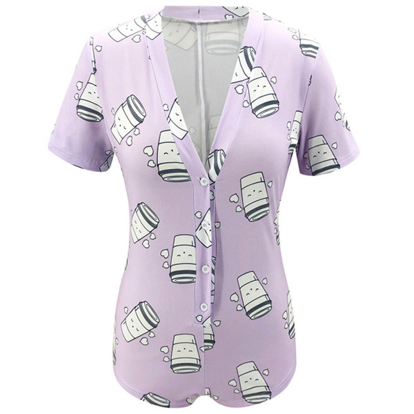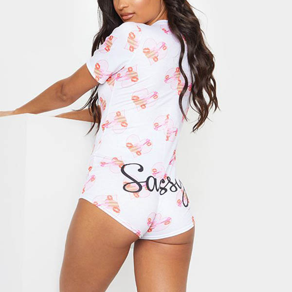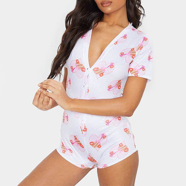 Fashion Short Sleeve V-neck Printed Romper